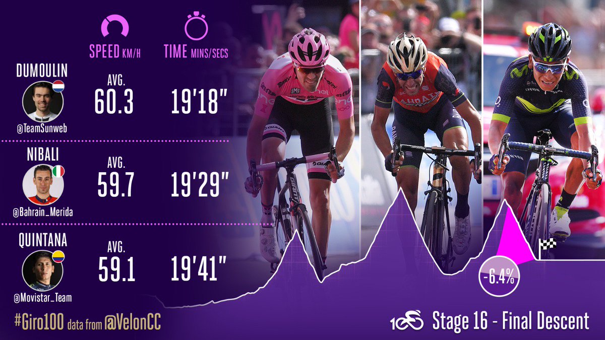 this is why I think Nibali thinks he has second, Pinot like Quintana has a relatively weak TT. Vincenzo probably thinks he has at least a minute on them both so he'll stick to Niros wheel guessing/hoping Pinot cannot gain enough time.