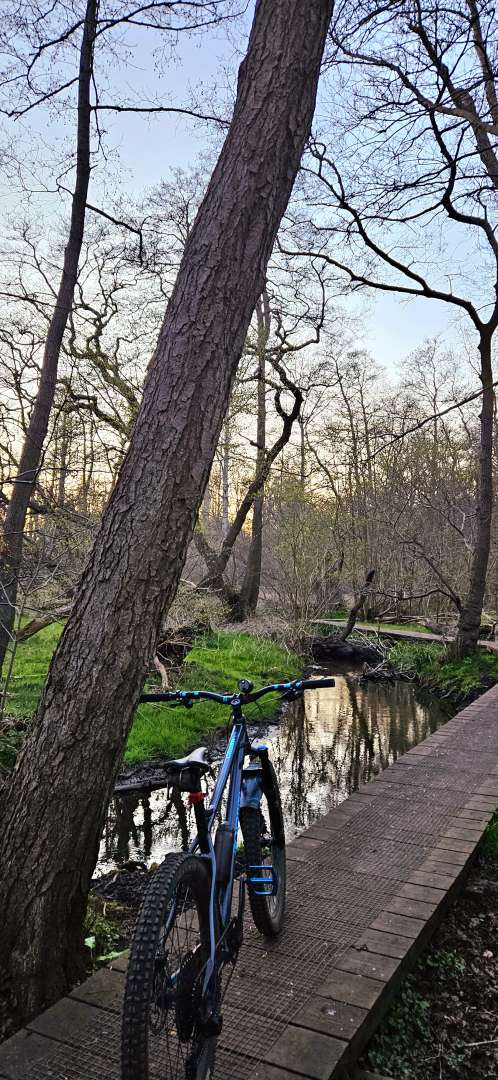 Easter holidays, so a rare outing for me on the club midweek ride. Luckily, that meant a trip to Woburn off-piste this week. Learned where loads of new (to me) trails are. If anything (and i'll whisper this) the place could do with a little rain to damp the dust down and give a bit more grip - some berms were a bit slippy-slidey.