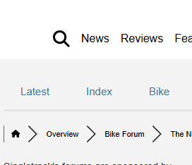 The other one for me is that certain links aren't active. The "Latest | Index | Bike | Chat", etc. line doesn't do anything if I hover over/around "Latest". "Index" becomes active if I hover on the line below and the links only become fully active hovering over "Bike" and beyond.