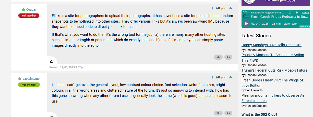 I just still can't get over the general layout, low contrast colour choice, font selection, weird font sizes, bright colours in all the wrong areas and cluttered nature of the forum. It's just so annoying to interact with. How has this gone so wrong when any other forum I use all generally look the same (which is good) and are a pleasure to use.