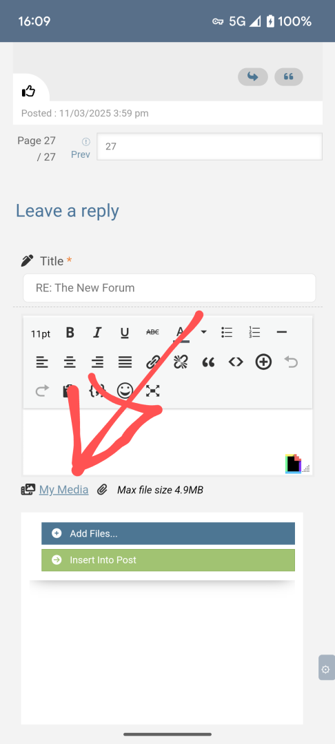 Now try taking a photo and add it to a post using the My Media instructions above