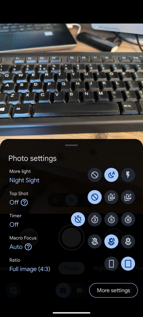 Cheers. No Pro tab on mine. This is what it looks like when I open setting on the camera App. Can't find it in advanced settings etc ... It's a real headscratcher.