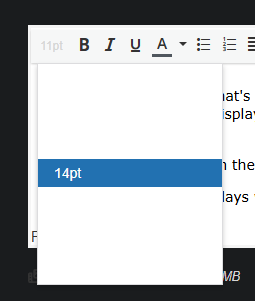 The 'font size' button displays white text on a white background in Dark Mode. It's only readable on mouseover.