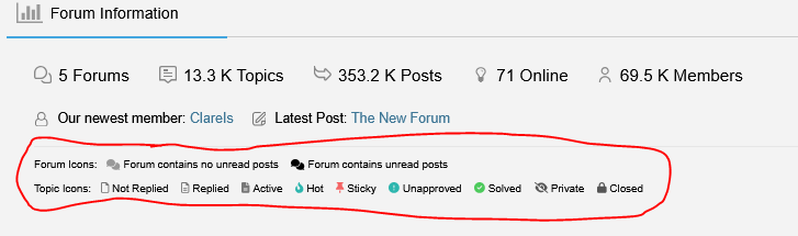 At the bottom of the list of threads there's this list of Icons, however I don't actually see any of them against the threads themselves