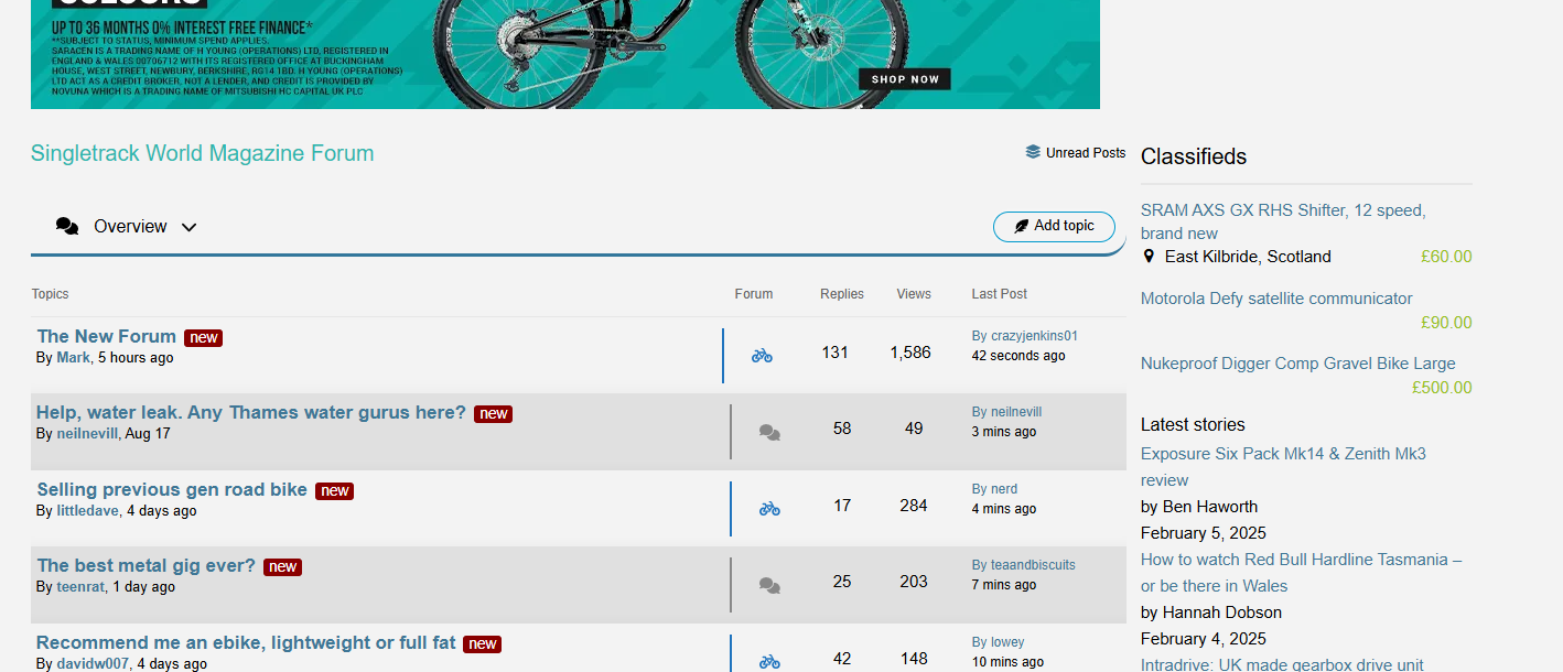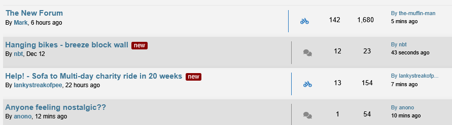 sorry, dont know where you mean. if i want to click the last post on the 'new forum' thread, how do i do that? if i click crazyjenkins name its his profile, and the '42 seconds ago' isnt a link. cant see anything under a bike forum anywhere.