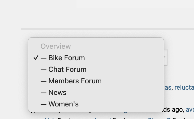 The forum jump drop down menu doesn't let me select the mixed forum with both chat and bike stuff mixed together in harmony.