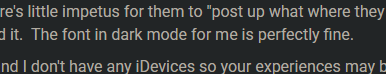 dark mode is unreadable for me.  Thats more a preference thing than anything else I guess or maybe browser related?  Just not enough contrast