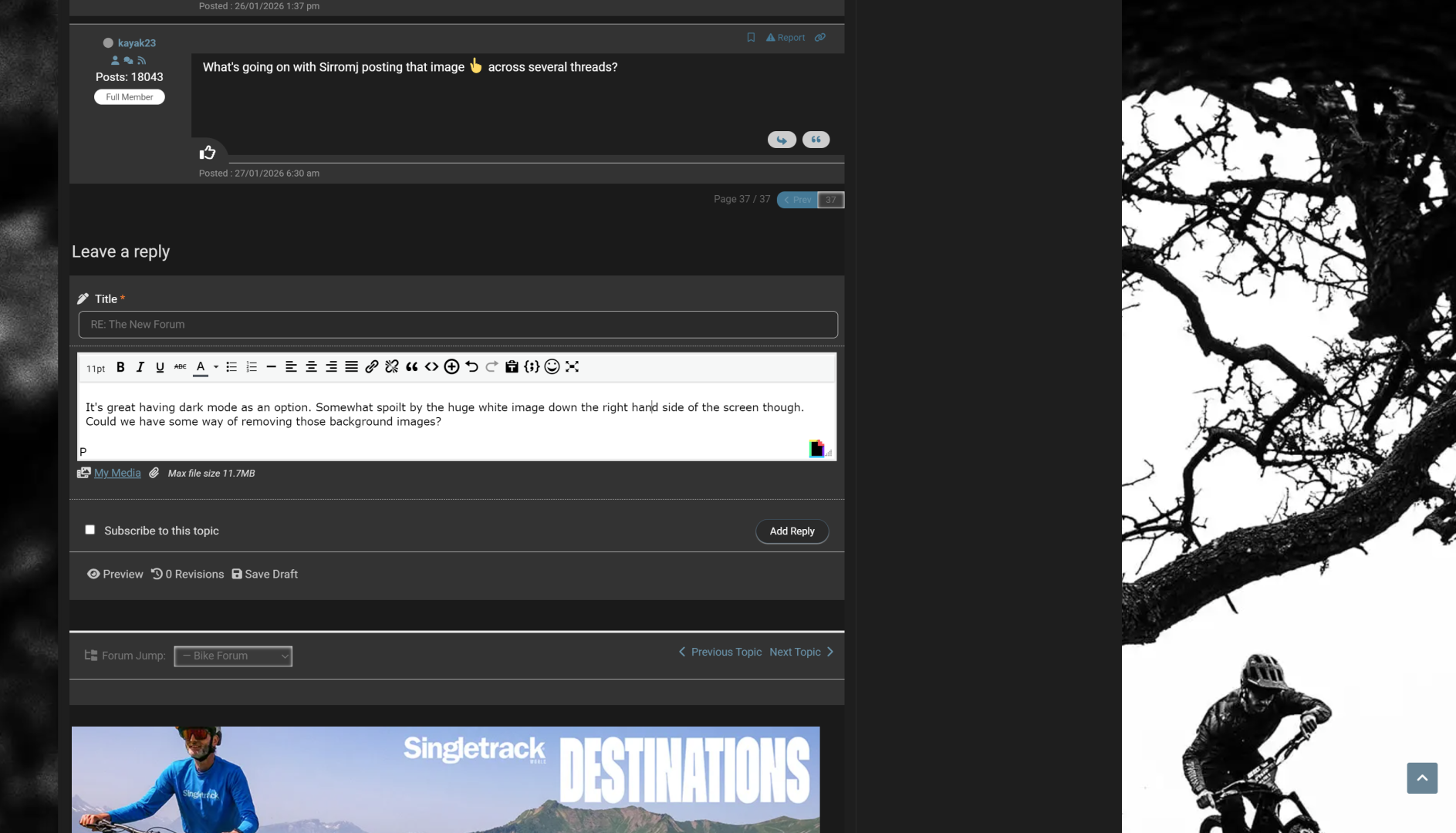 I always liked forums but as a MTBing community this one feels on the way out, the technical issues plus the ageing demographic (I was one of the younger ones here in 2010 - and I’m still one of the younger ones) means there’s just not enough happening here…