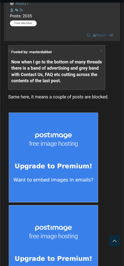 My subscription lapsed due to an old credit card being on my account details so I've been on the free member level for a few days now - wow!! Is it a bad user experience, slow, banners across the screen so posts are unreadable and replying a chore. I can't see how with such a poor user experience the forum can be tenable
