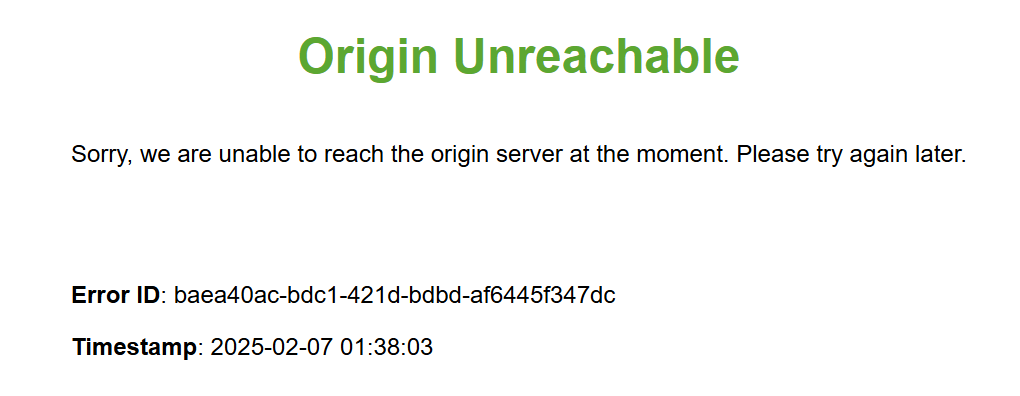 Sorry, we are unable to reach the origin server at the moment. Please try again later.