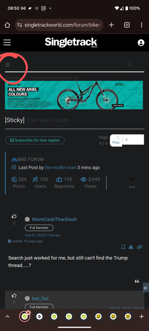 The burger menu to go back the the posts list is a bit finiky (and an annoying extra click). I only just spotted the forum jump thing grabbing screenshots as I rarely go below the dotted line. But that doesn't navigate me back to the post list so, irrelevant 😄