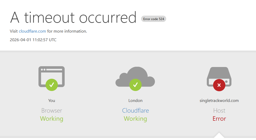 Had a few timeouts replying to posts. 3 times to get the post to take on the 165mm cranks thread. Safari/Mac.