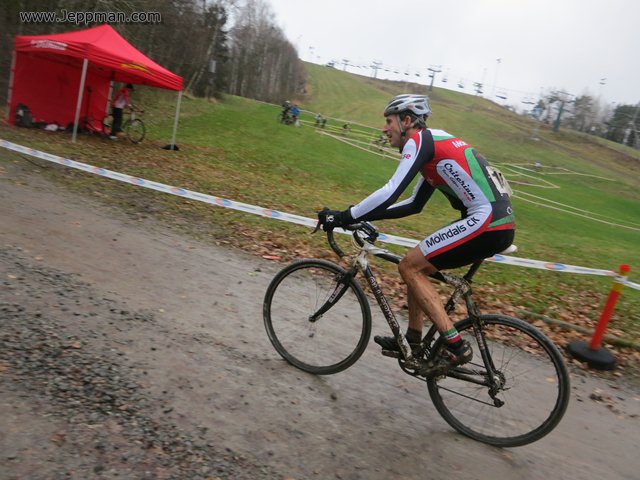 Yay, my broken body was recovered enough to let me race today after missing the last 2 NWCCA rounds. Tough course in Northwich, very claggy mud and plenty of running (arthritic shuffle) up muddy banks. Got a reasonable start but dropped right off mid race - really lost focus. Must thank whoever it was who lapped me on the penultimate lap who said grab my wheel. I did and stuck with him for a bit, really got me going again.
