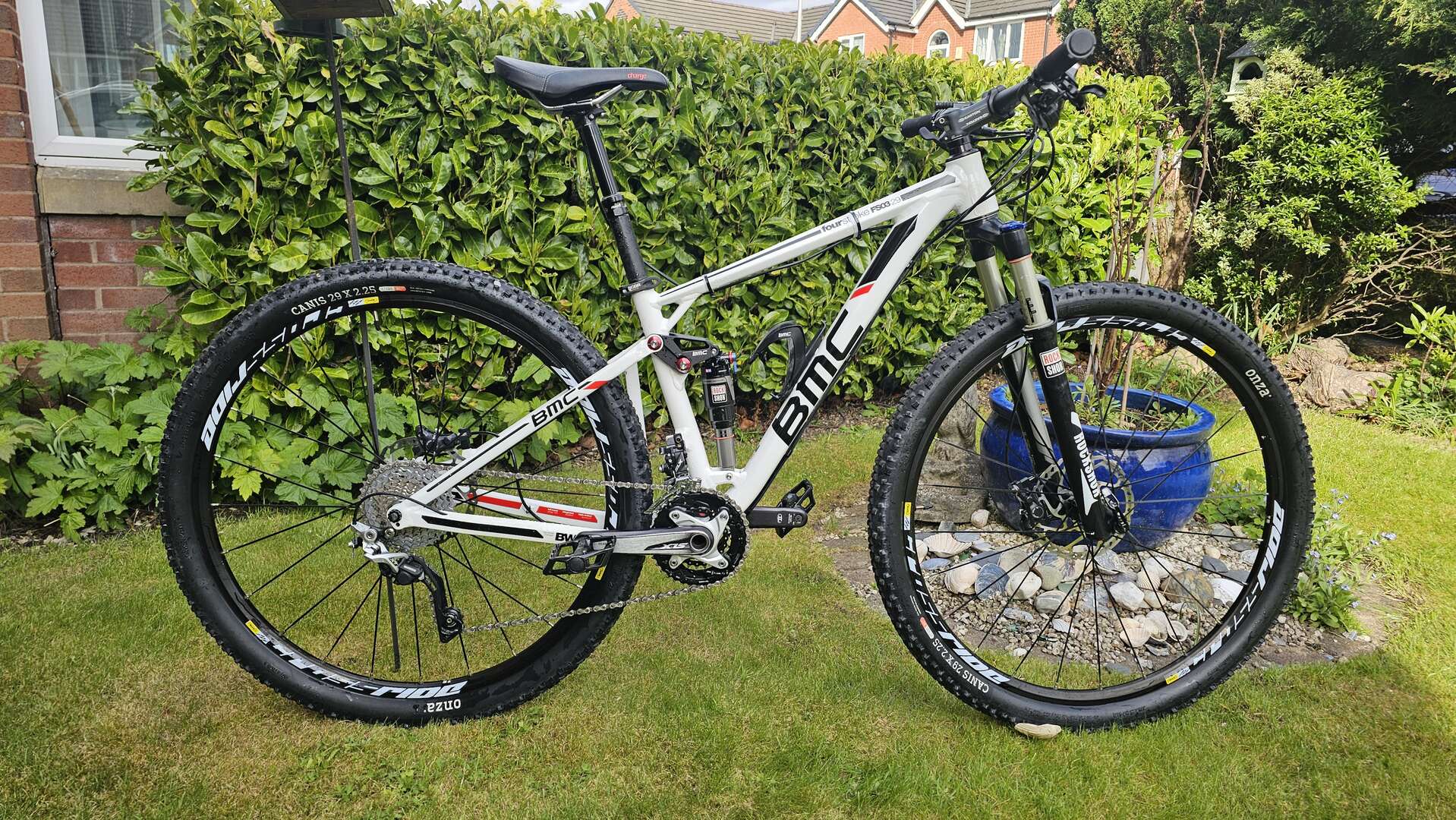 Pulled down MrsF's BMC Fourstroke off the hanger and pumped up the tyres, cleaned off the dust and oiled the chain. We're off to Newborough Forest camping and were taking this bike rather than her hybrid (she prefers that as it rolls faster), but I'd rather she didn't stack it on Forest Tracks. I'll be on the CX bike.