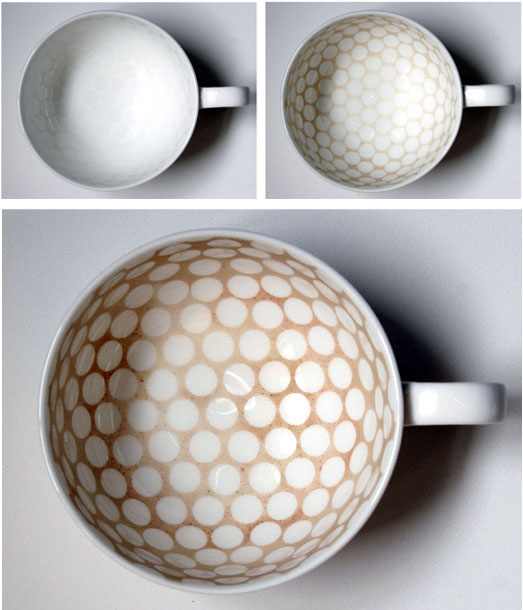 For example, a cup that starts white but has a glaze designed to pick up tannins gently as it is used with tea or coffee so over time a pattern emerges.