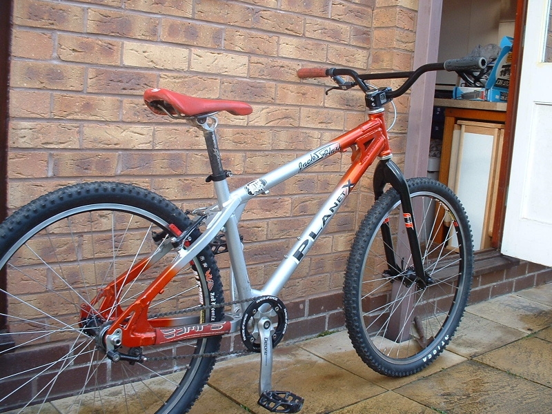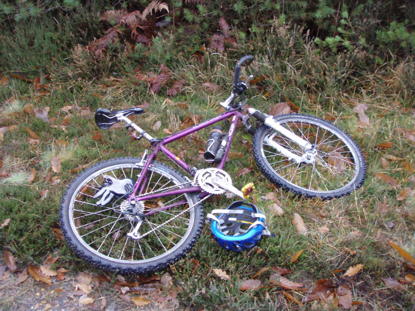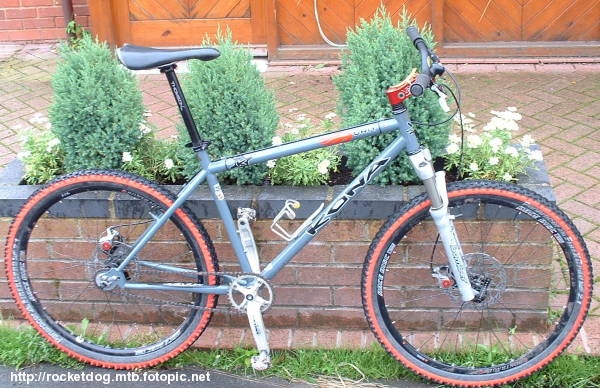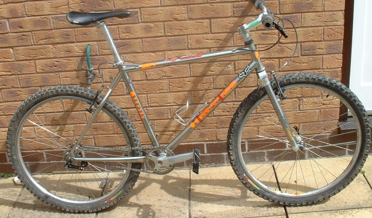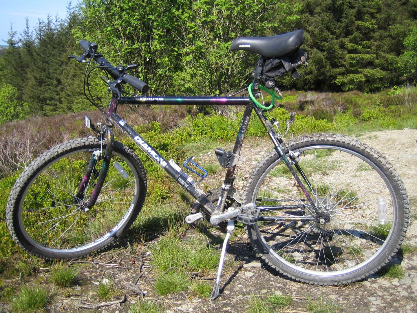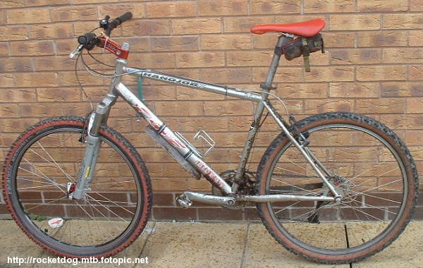 This is my first mountain bike, pictured in late 2006, by which time I'd had it for 10 years. I retired it shortly after. The only original bits by then were the frame, seatpost clamp, front derailleur and handlebars.