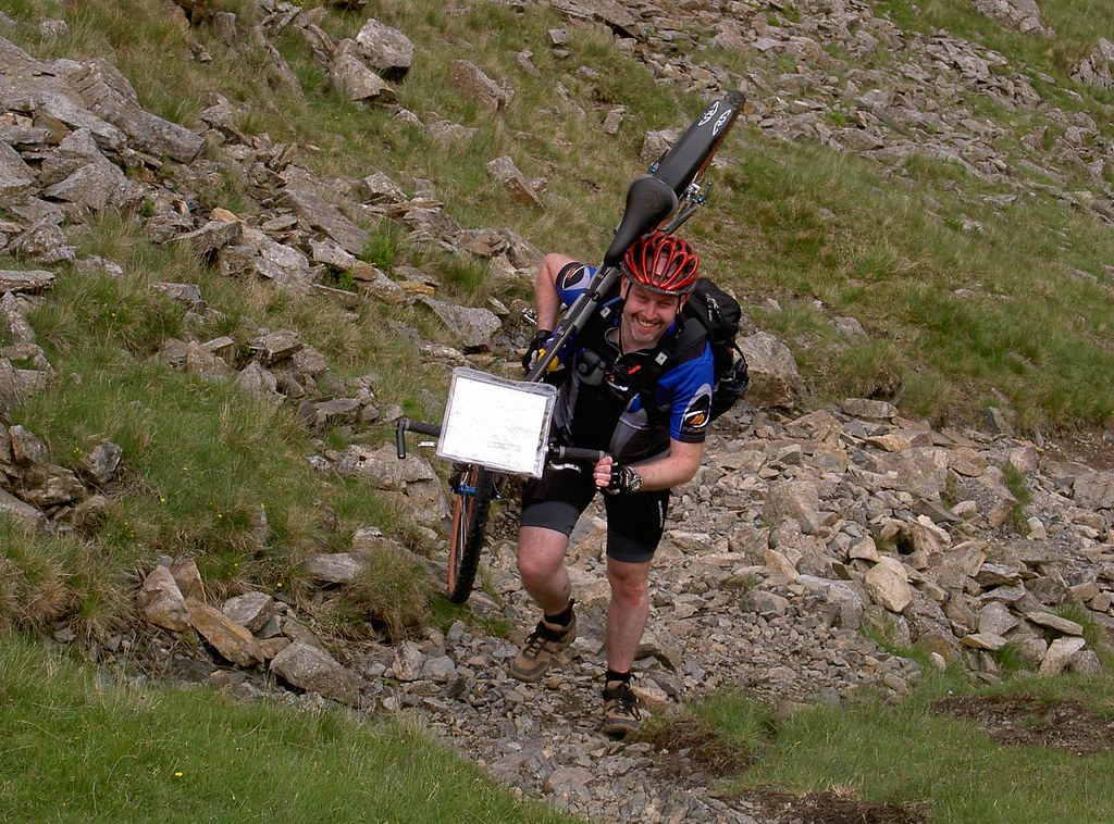 A couple from when we did the Coast to Coast in 2003 - first image was used as a STW website header image at the time, 2nd is me carrying bike up Black Sail Pass...