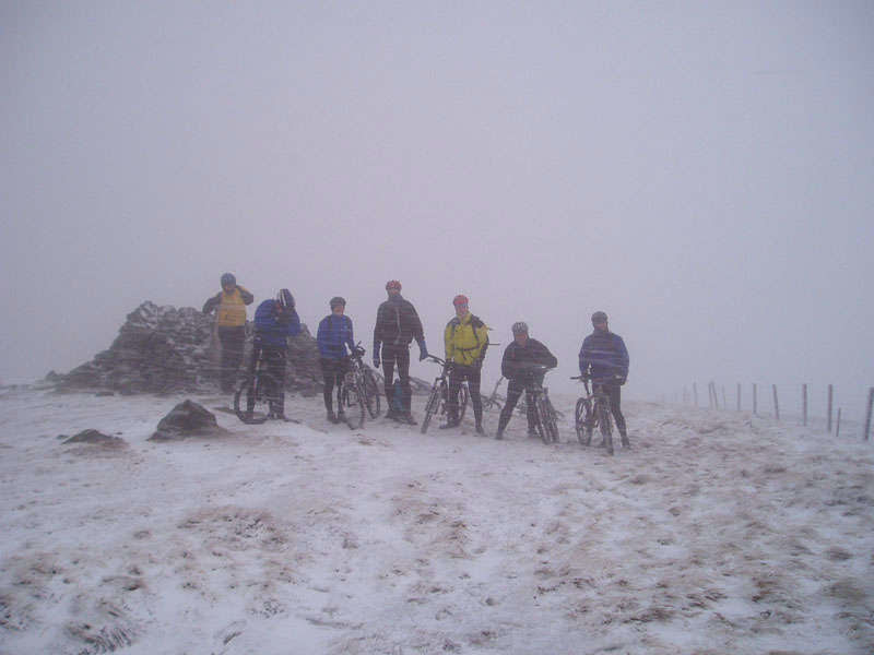 Stirling Bike Club on top of Ben Cleuch - January 2004.