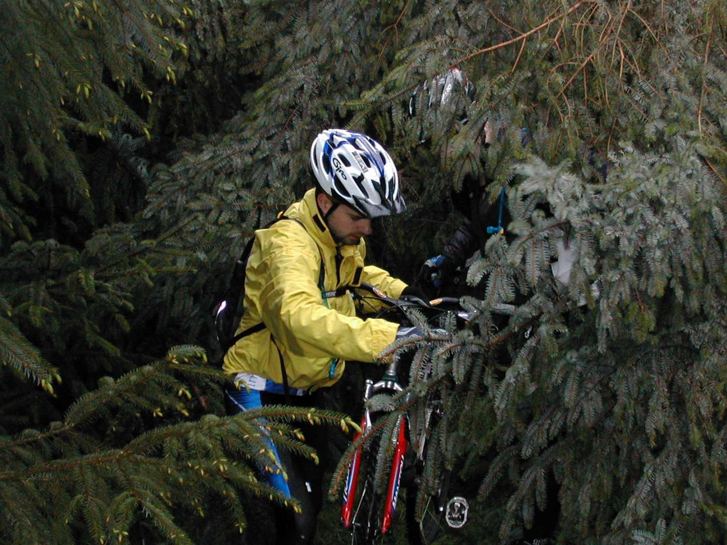 I haven't got a single picture of my early MTB years (I bought a Giant CFM1 in 1992) because taking a camera out in the filth of MTB wasn't going to happen. The pics I have got were events with official photographers and even then the number and quality is low. Here's one from the Raid Pyrénées Gascongne in 1998. Some teams had started using the old "black brick" garmin GPS but I still used IGN maps and held on to the tall guy's camel back to avoid crashing while reading the map in full flight. We weren't the fastest but finished fifth thanks to not getting lost.