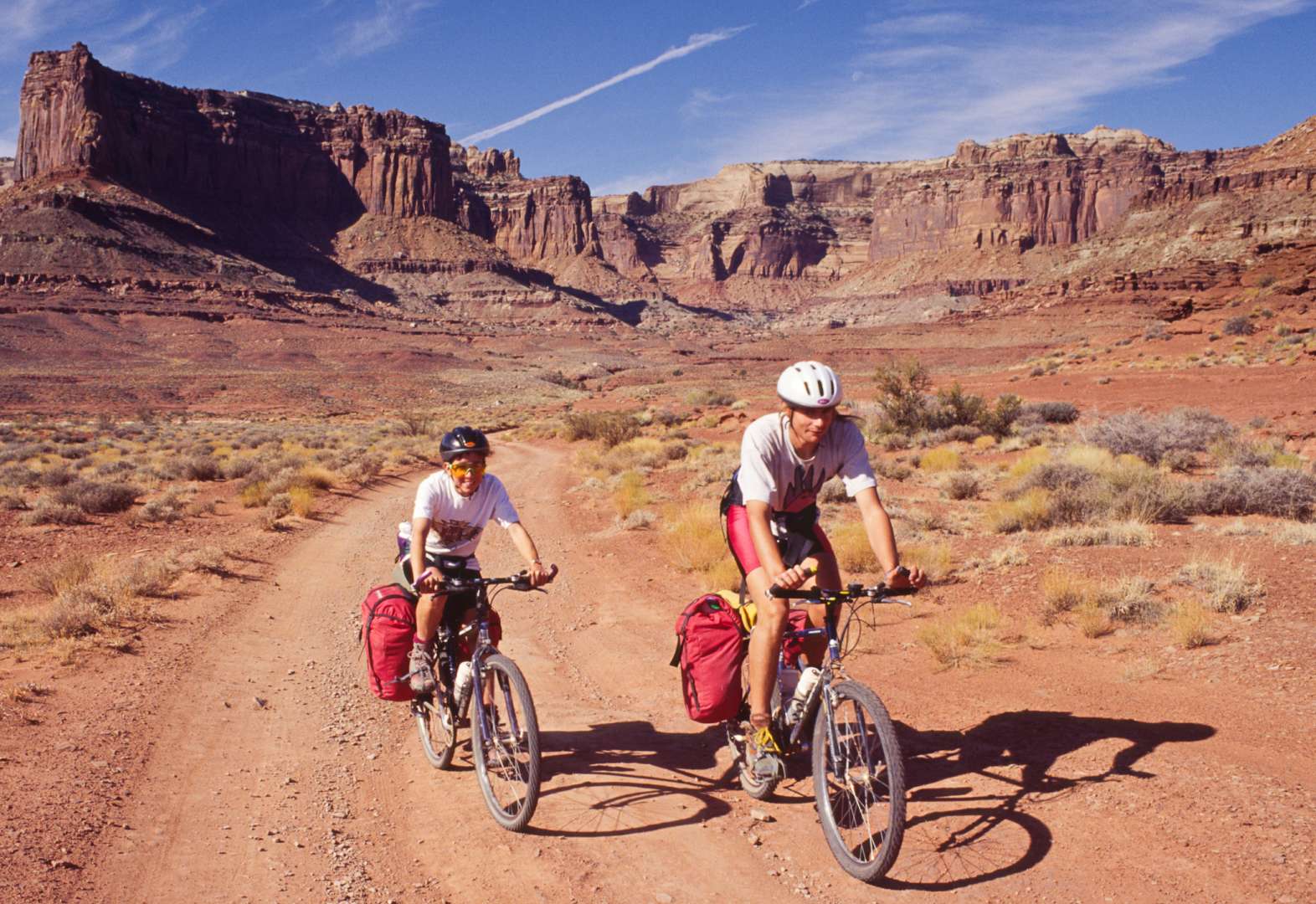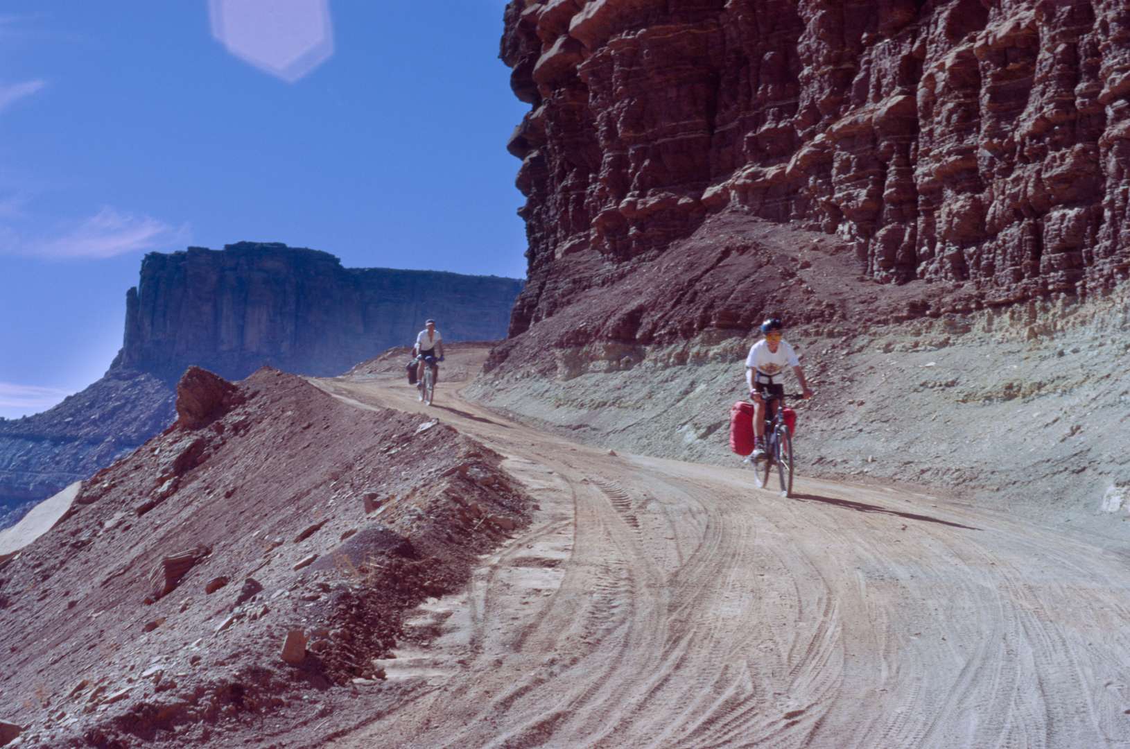 These are the White Rim Trail in Utah. Taken in 1994 showing myself mrs Ampthill and Doug in the back ground of one shot. We road without a support vehicle which is tough as there are just 2 places you can get water from the rivers