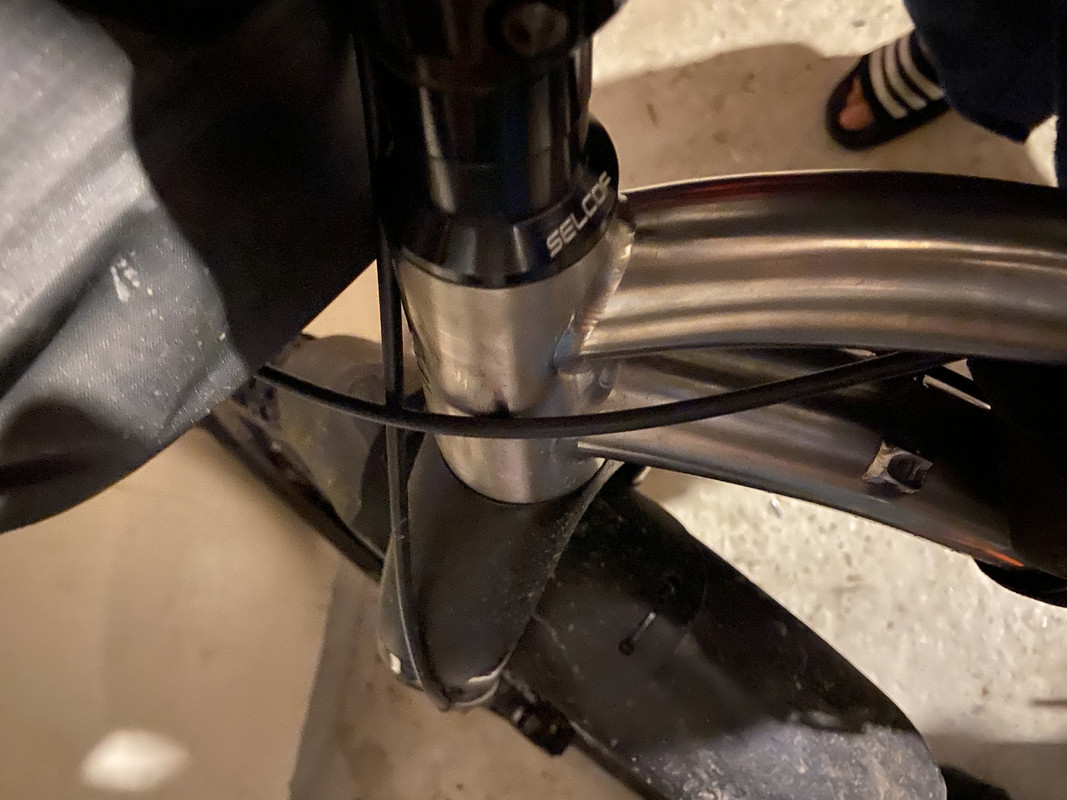 The frame looks fantastic but there are some weird bits. The BB is offset, the cable routing to the rear derailleur is on top of the chain stay, rear brake routing set up for the right hand side of the handlebars and, as mentioned, weird top tube bend at the head tube.
