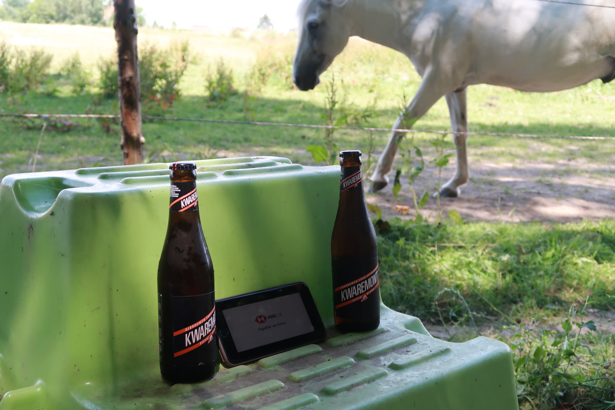 Watching on the big screen while waiting for the tour caravan to arrive: