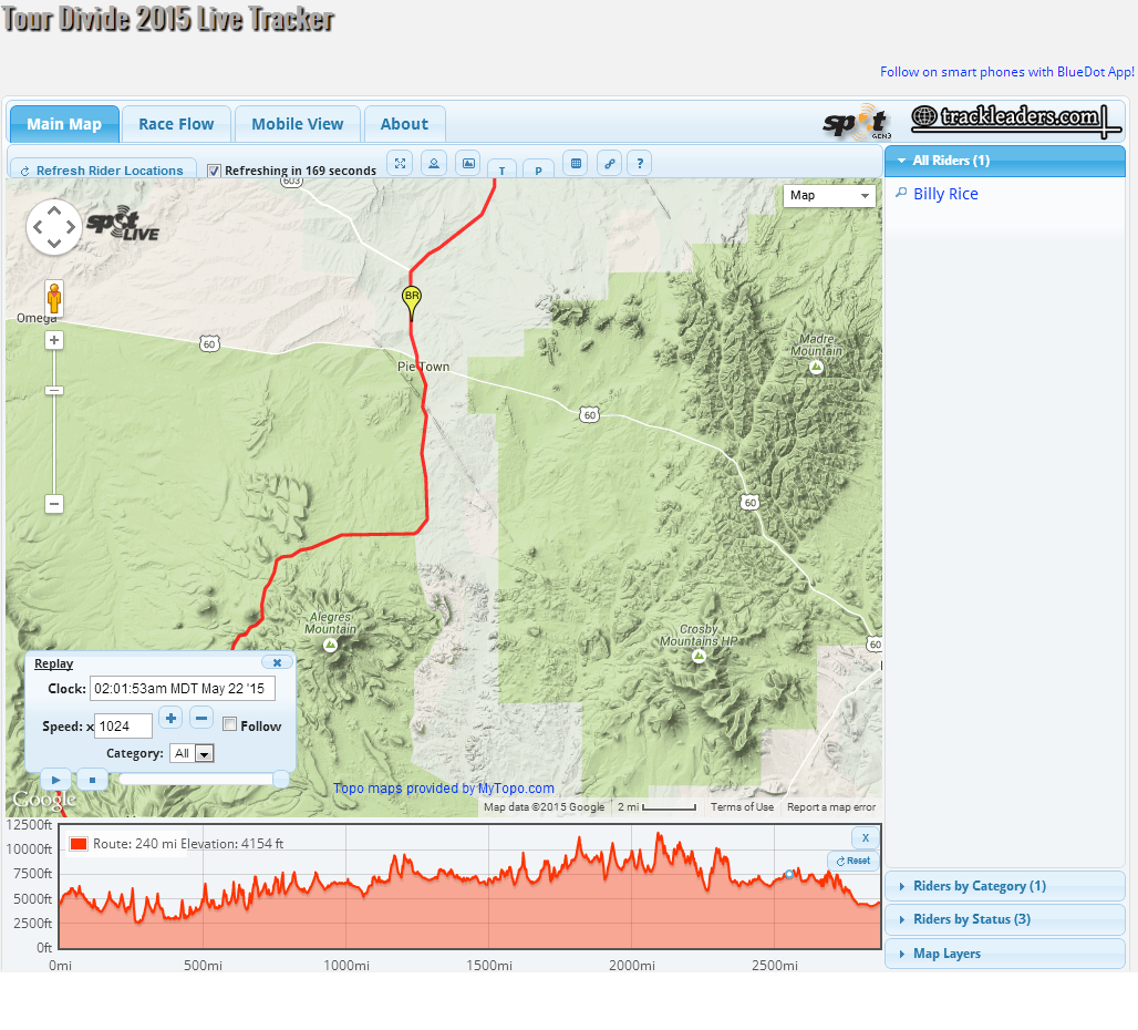 Do****ching available here: [url= http://trackleaders.com/tourdivide15 ]http://trackleaders.com/tourdivide15[/url]