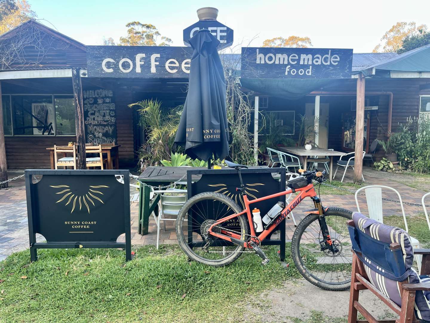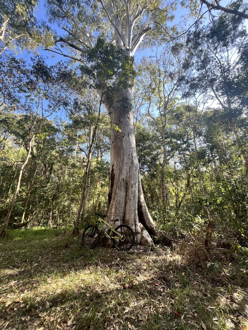 Well I made harder work of a hard ride today. Rode from home at 5.35am. Realised I'd forgotten to pack extra food. Arrived at the only Cafe or shop on the 100km route at 6.05...closed. Even though they were supposed to be open. Decided I'd try and ration my muesli bars. Rode through the mist on the flats then followed a road up the 450m climb into the range. 2 hours in I reached the gravel, then the clay and sand... Endless ups and downs getting slower and slower across Bellthorpe and Middle Road to Sunday Creek Rd. Only saw a few motorbikes until I got there.ย