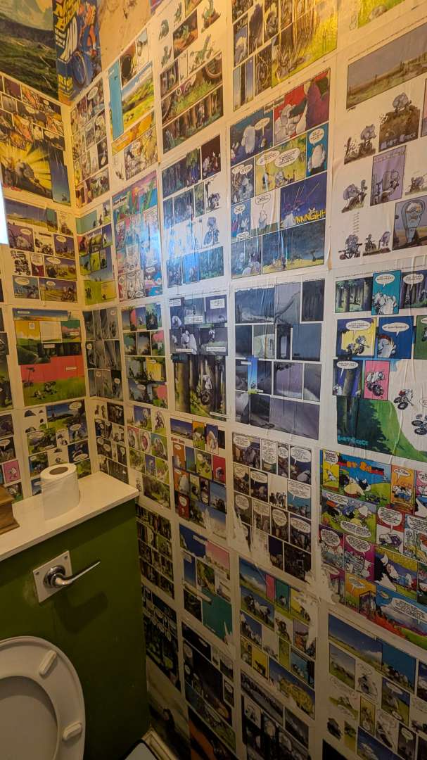 We then headed down to Bank View Cafe on the A616 for a butty - I must have never been to the loo there before, as I'd never seen one of the toilet walls plastered in Mint Sauce cartoons!