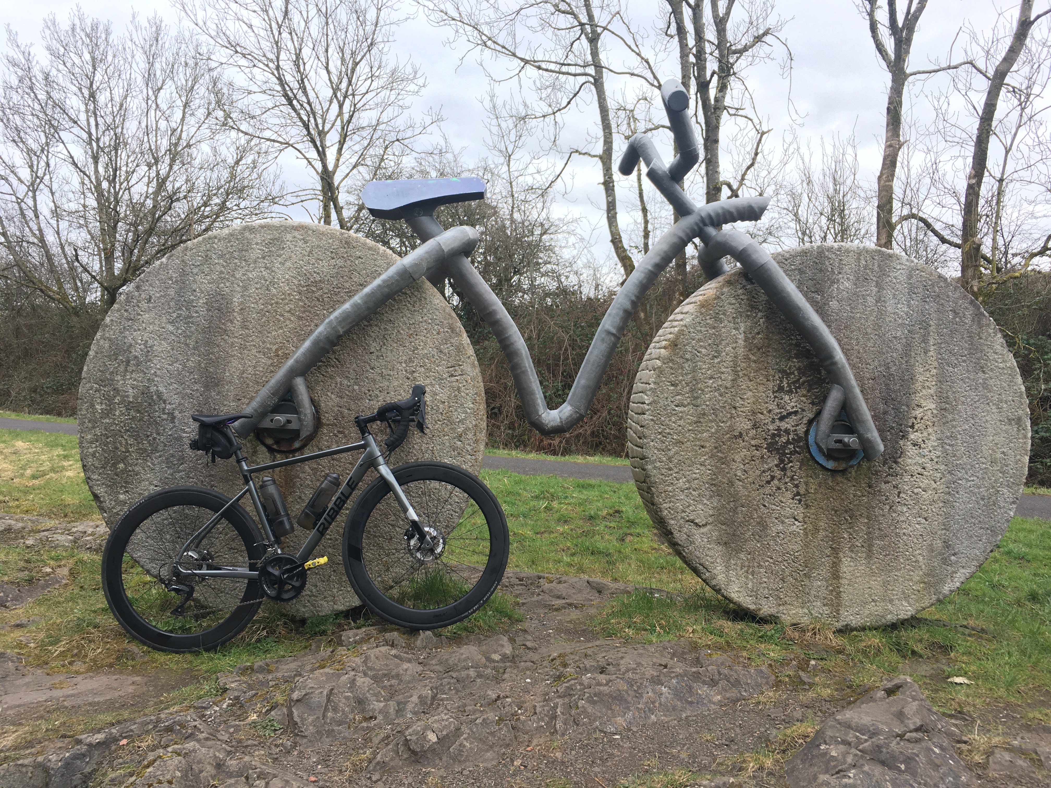 Not been riding since last Sunday due to chest infection. Managed out today for a little pottle via the inlaws for coffee. New Prime Privera 56mm wheels (and x-light bar) on bike - had to spend my teacher back pay on something. Will be out on the MTB next weekend at Thornielee