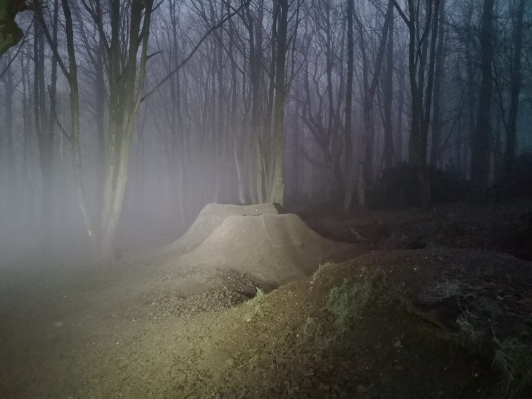 MTB this morning messing about with jumps and berms. Small jumps, not the big ones in the pics, they just looked cooler.