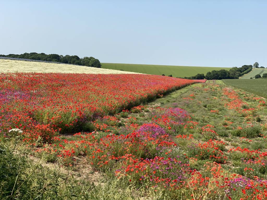 Ashe warren, Hampshire. Wild flowers grown for harvesting the seeds, a real blaze of colour. Bottom of the loop from Newbury mostly off road 36.4 miles, warm at 27*