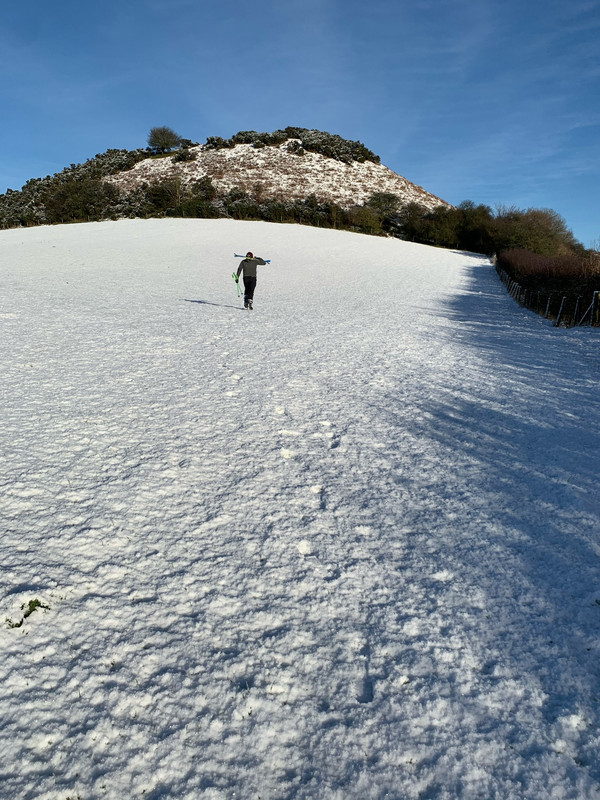 Nice up on the Cotswolds above Cheltenham and Gloucester still a bit of snow around to have fun on the Fattie mind so many walker about.Never seen a frost in Dorset nice up by that arch.