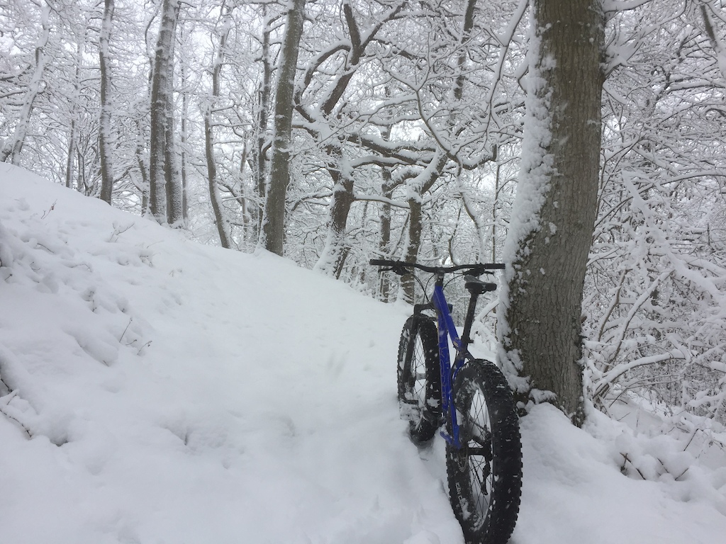 My work was closed today so took the dune out for a razz in the white stuff. Turns out fatbikes are brilliant on snow. Who'd have thought...