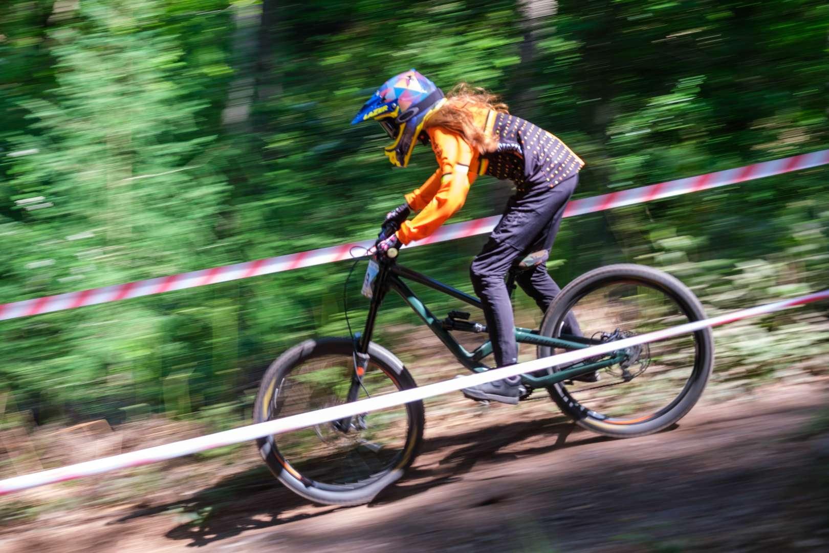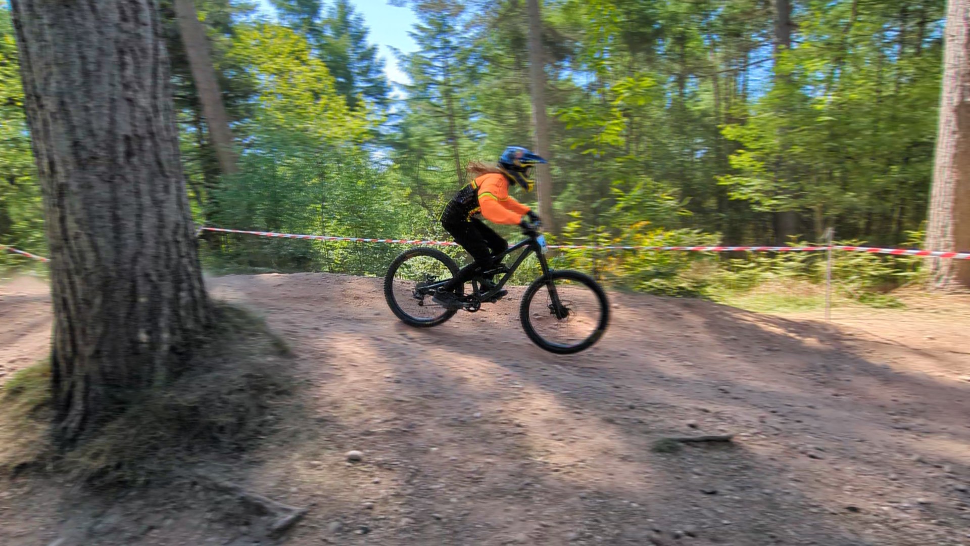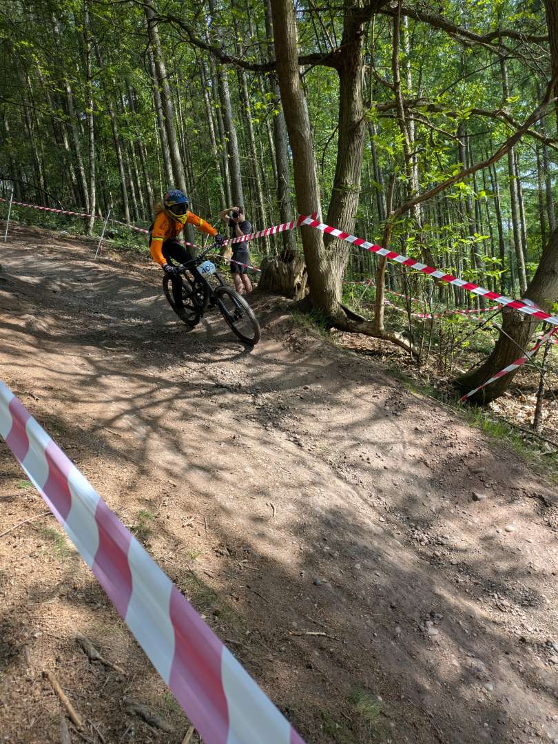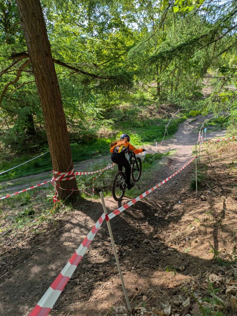 Track is an interesting one and more tech than the previous race she did. The root garden sections are great and varied. My lad skips the first one and most of the second one by sending both, although he's still yet to do the full-send down to fire-road off the top of the 2nd set of roots. But they'll deffo keep her on her toes.