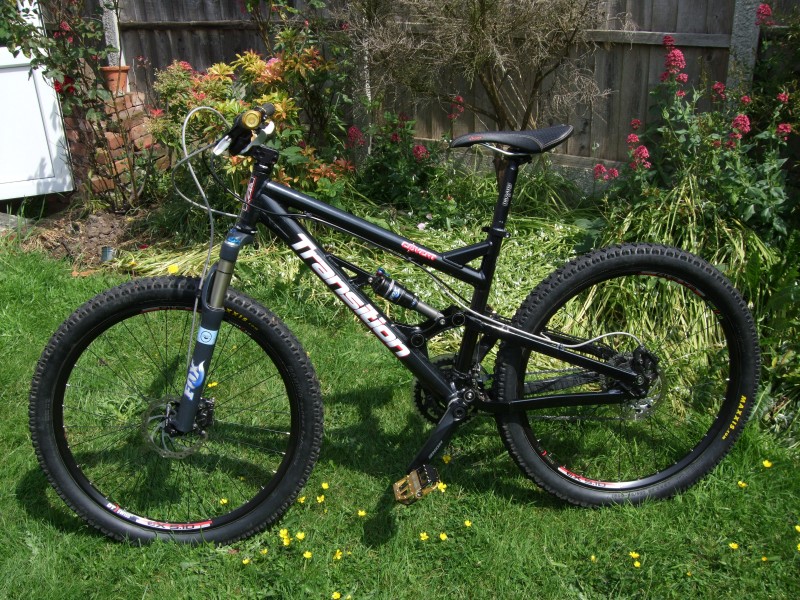 456, pike airs, crossmax's, heavy stem, xt cranks and deore bits.