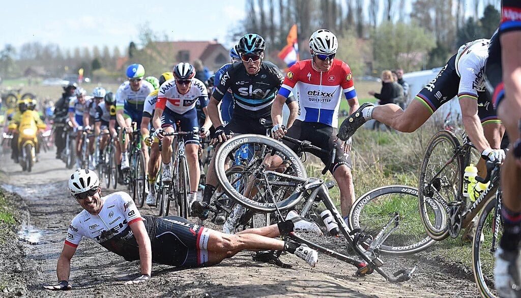 Cancellara went down and Sagan was on his wheel and had nowhere to go - somehow managed to bunnyhop his rear wheel when everyone else crashed.
