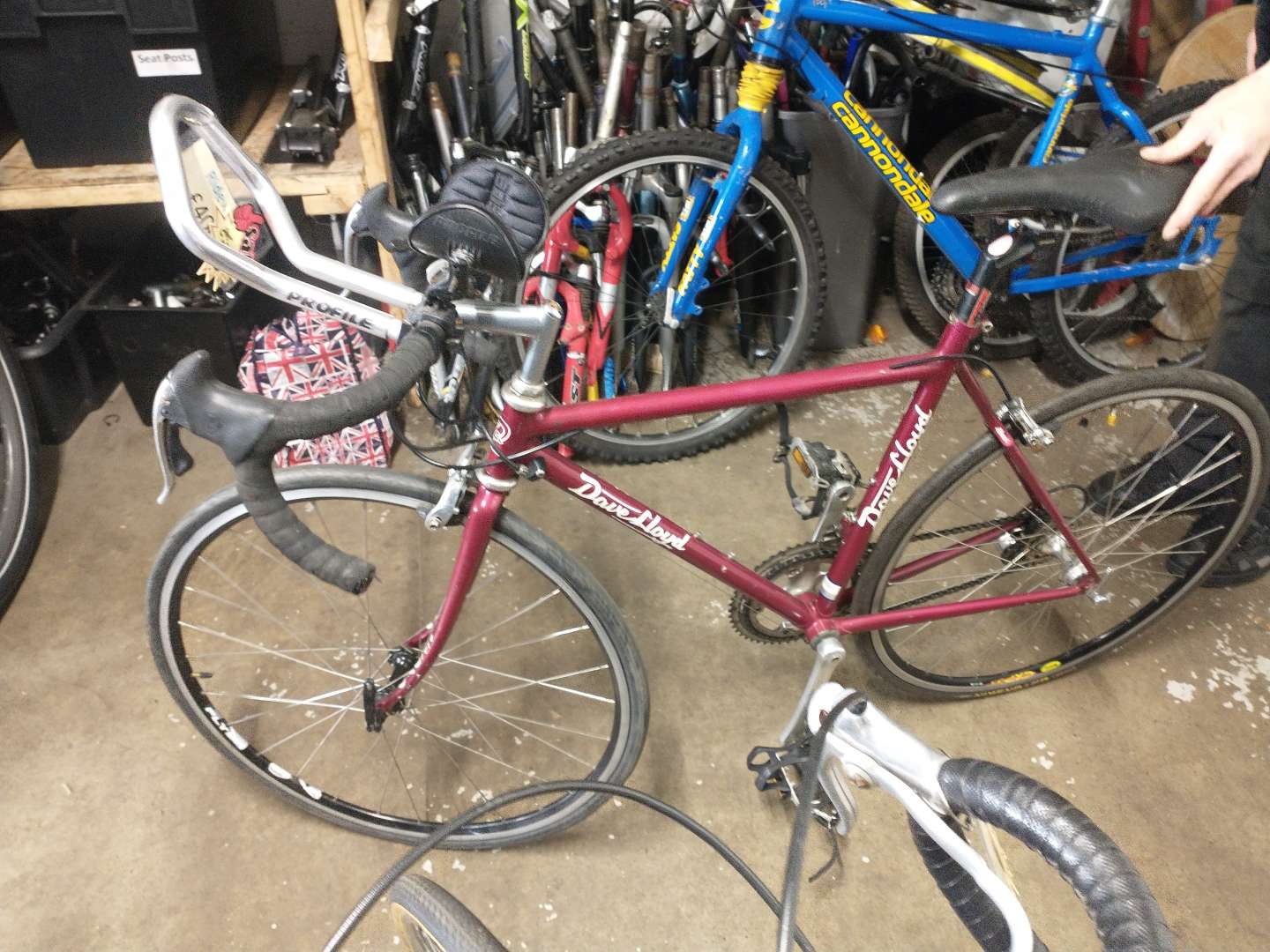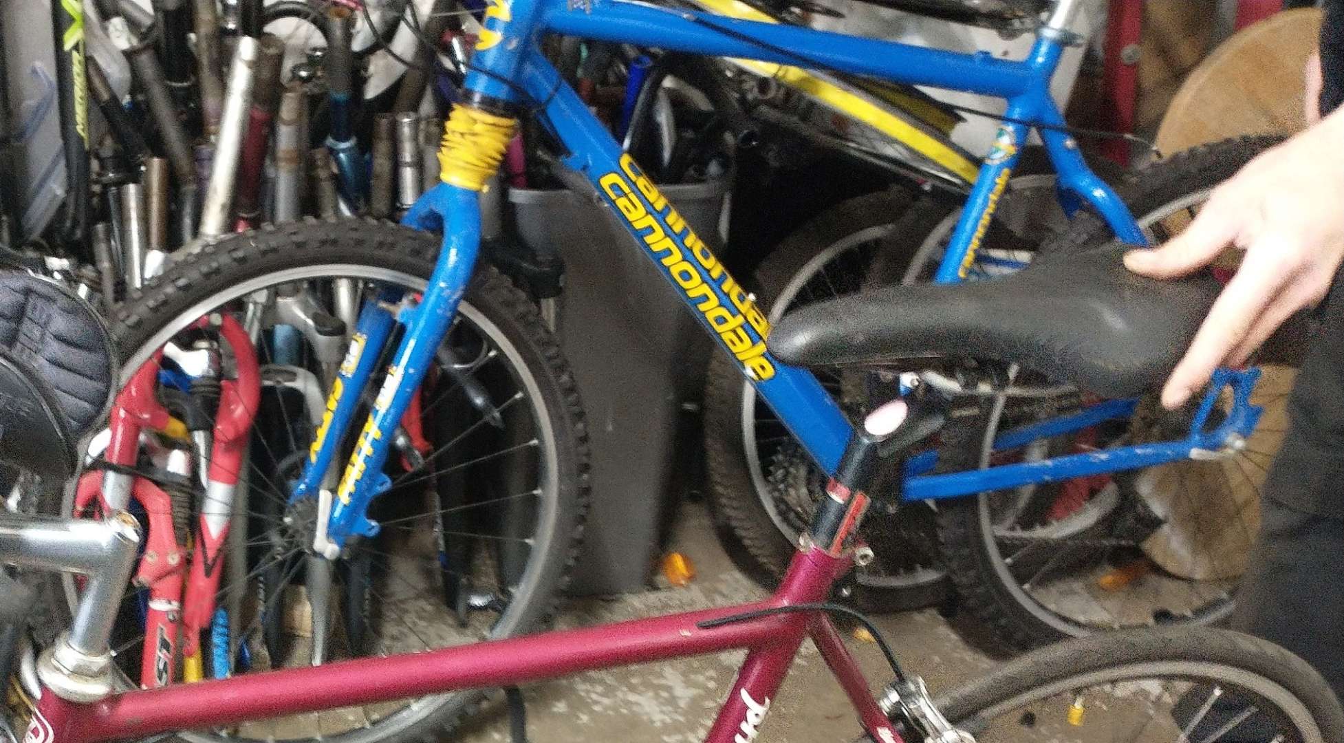 Lurking at the back was a Cannondale cad 3 in Volvo Cannondale blue/ yellow with a headshock and big enough to fit me.