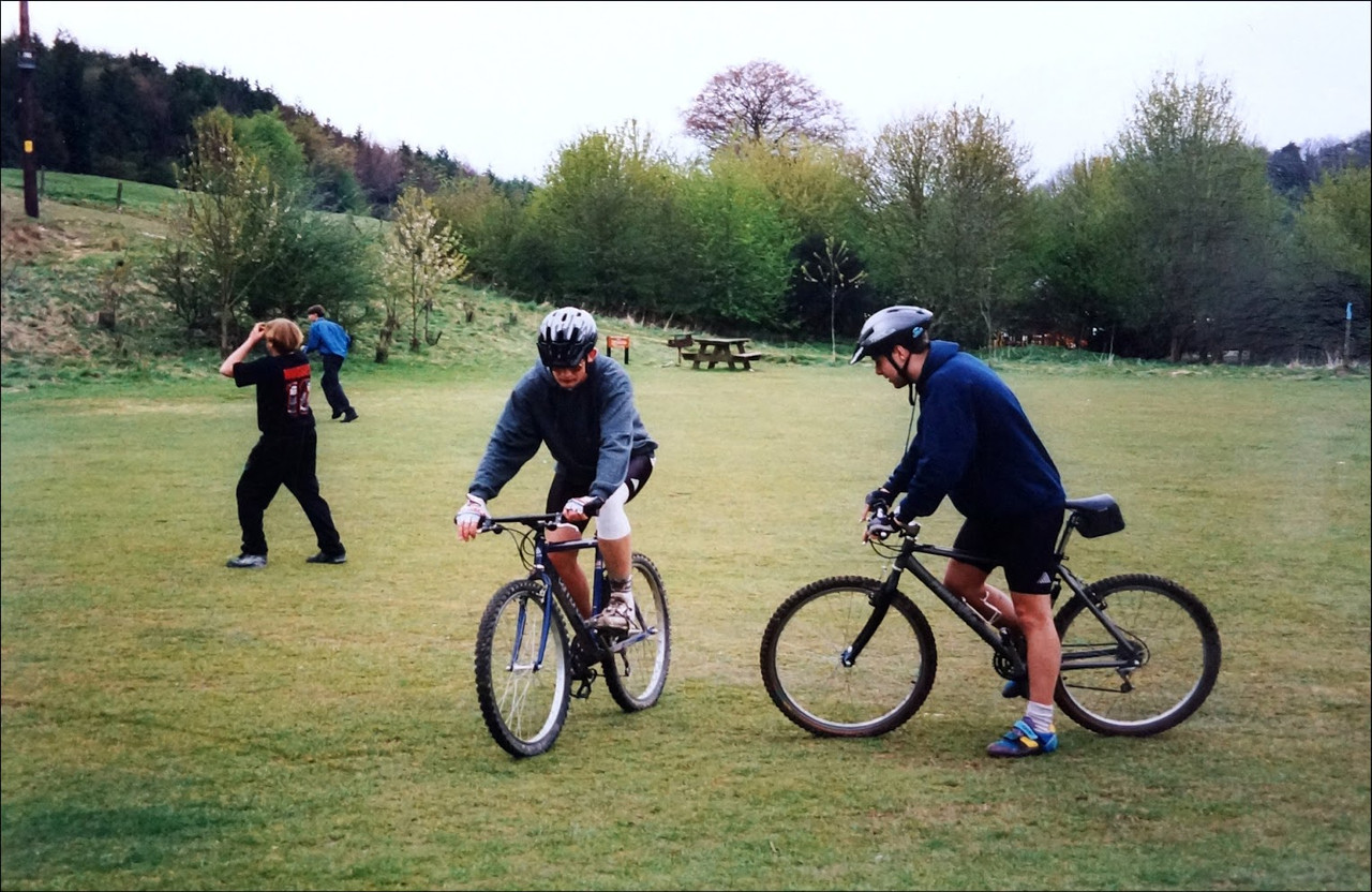 Late 90s : University days, smash and grab rides round Hanchurch woods in all conditions, dripping wet by the pub fire with beer and crisps.