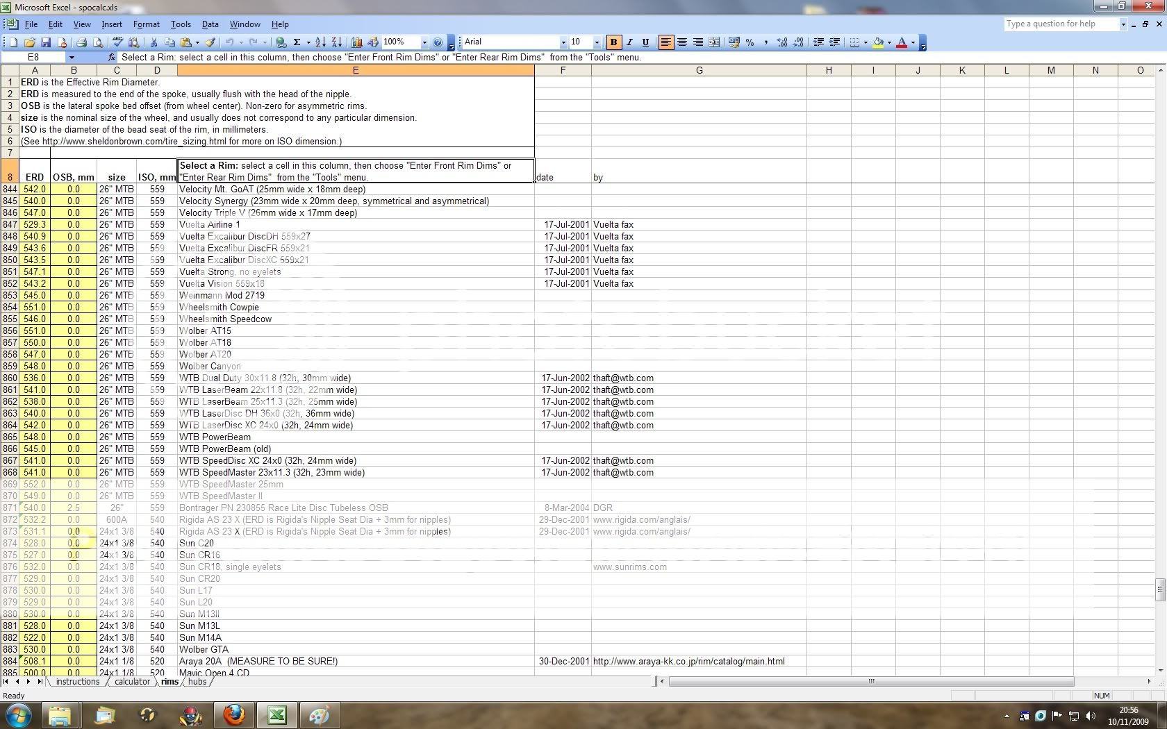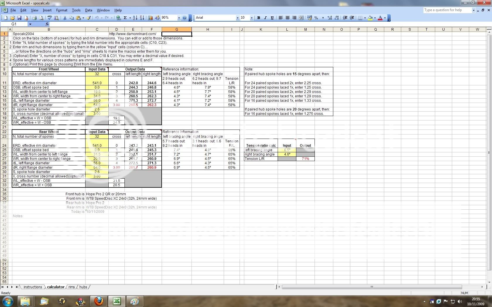 I use 'spocalc.xls', a spreadsheet based database of hub and rim dimensions with integrated calculator created by Damon Rinard. I find it very flexible and more accurate than the DTSwiss calculator and of the measurements I have been able to check against the hardware have been accurate. Screens [url=