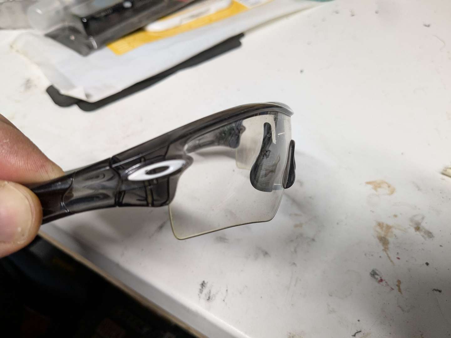 Oakley Radar. Unsure on lens shape due to angle. Possibly pitch, maybe edge, maybe path.