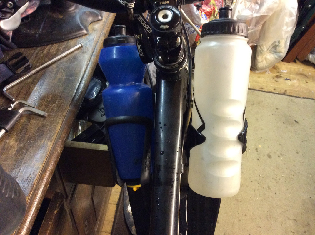 Haven’t had a bottle on a mountain bike since I got my first camelbak. Back in the day had cages fitted for light batteries but since then hasn’t been an issue.