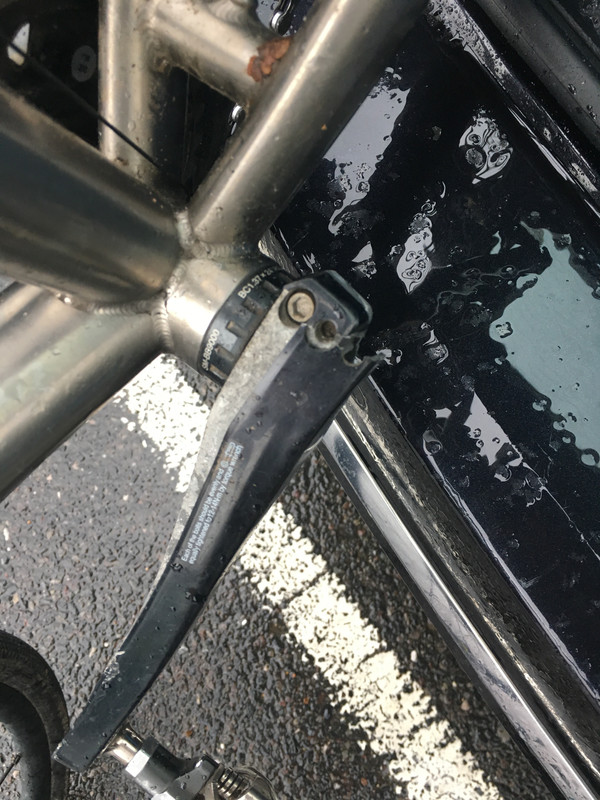 I got home but where its so bent it contacted the chain stay, s'why I had to go one footed doing like half-rotations. Luckily had only got a few miles from home.