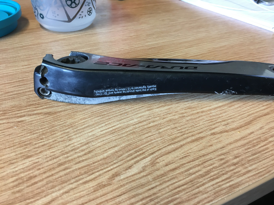 This bloke nearly DIED! http://carlinthecyclist.com/epic-failure-ultegra-6800-11-speed-crank/