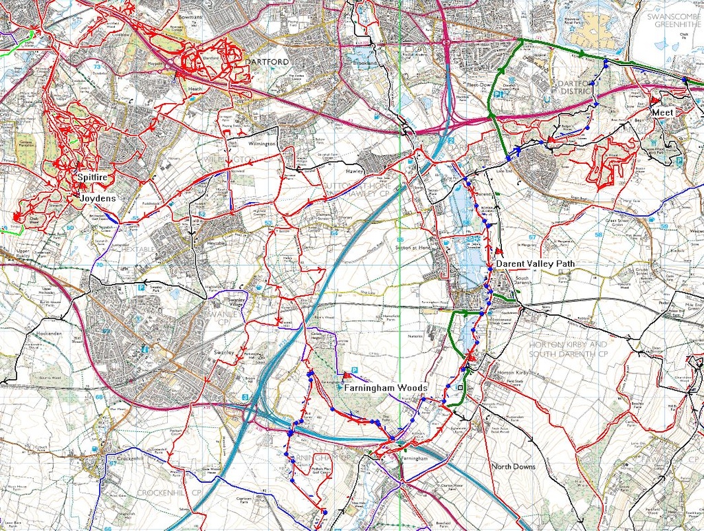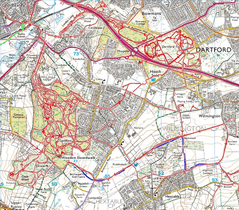 It's a nice place to ride-some nice singletrack in there once you get to know your way around,at a push I can clock up around 10 miles in there - which is good fun and a decent workout. Fair ammount of additional riding you can link over to Dartford Heath too or head out east to pick up the River Darent and Farningham woods for a more expansive loop.