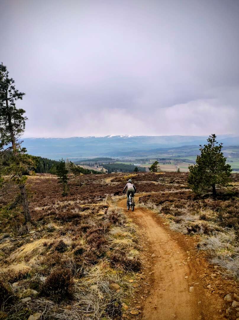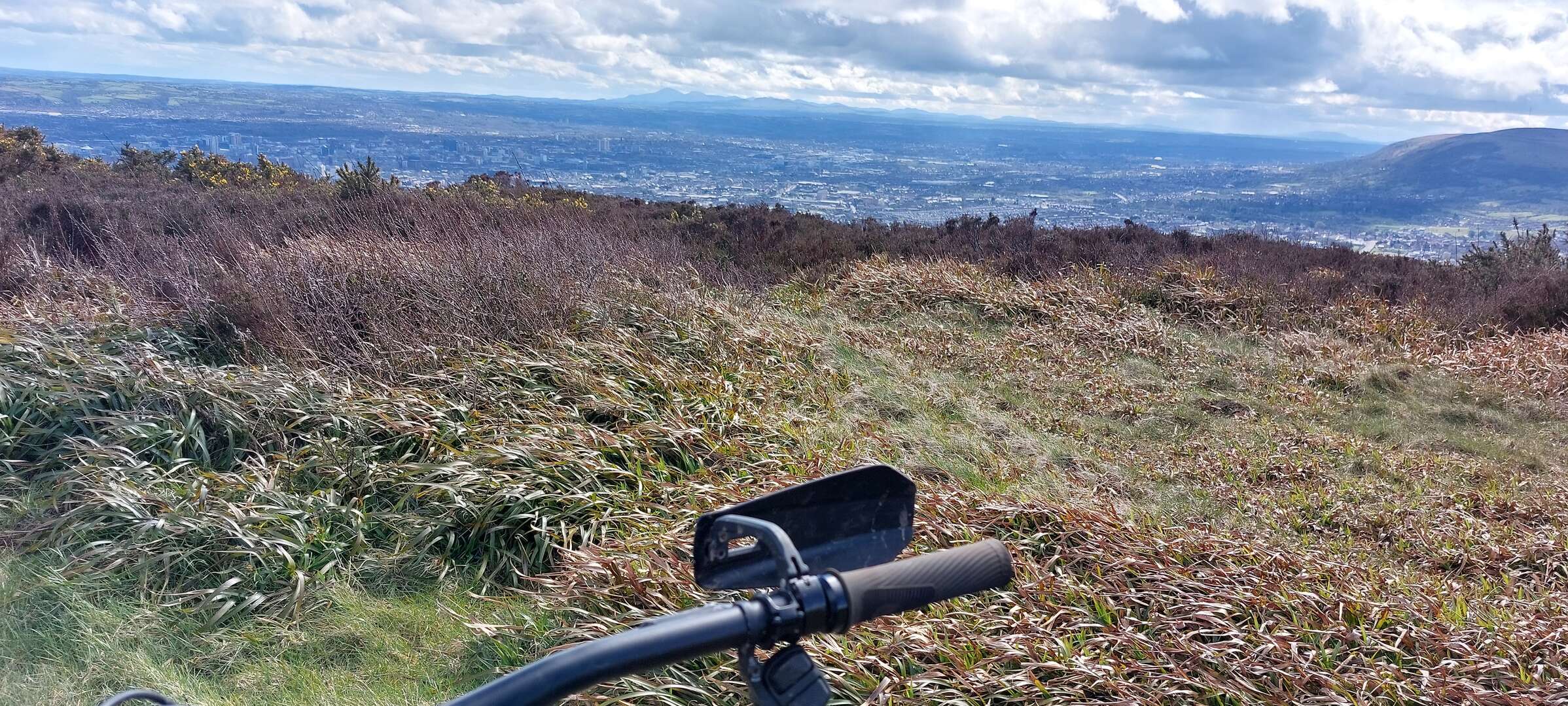 when I arrived back home, the sun was shining, and it was a lovely afternoon. So I couldn’t resist another quick blast on my local trails. You can see the hills in the distance where I was riding in the morning!