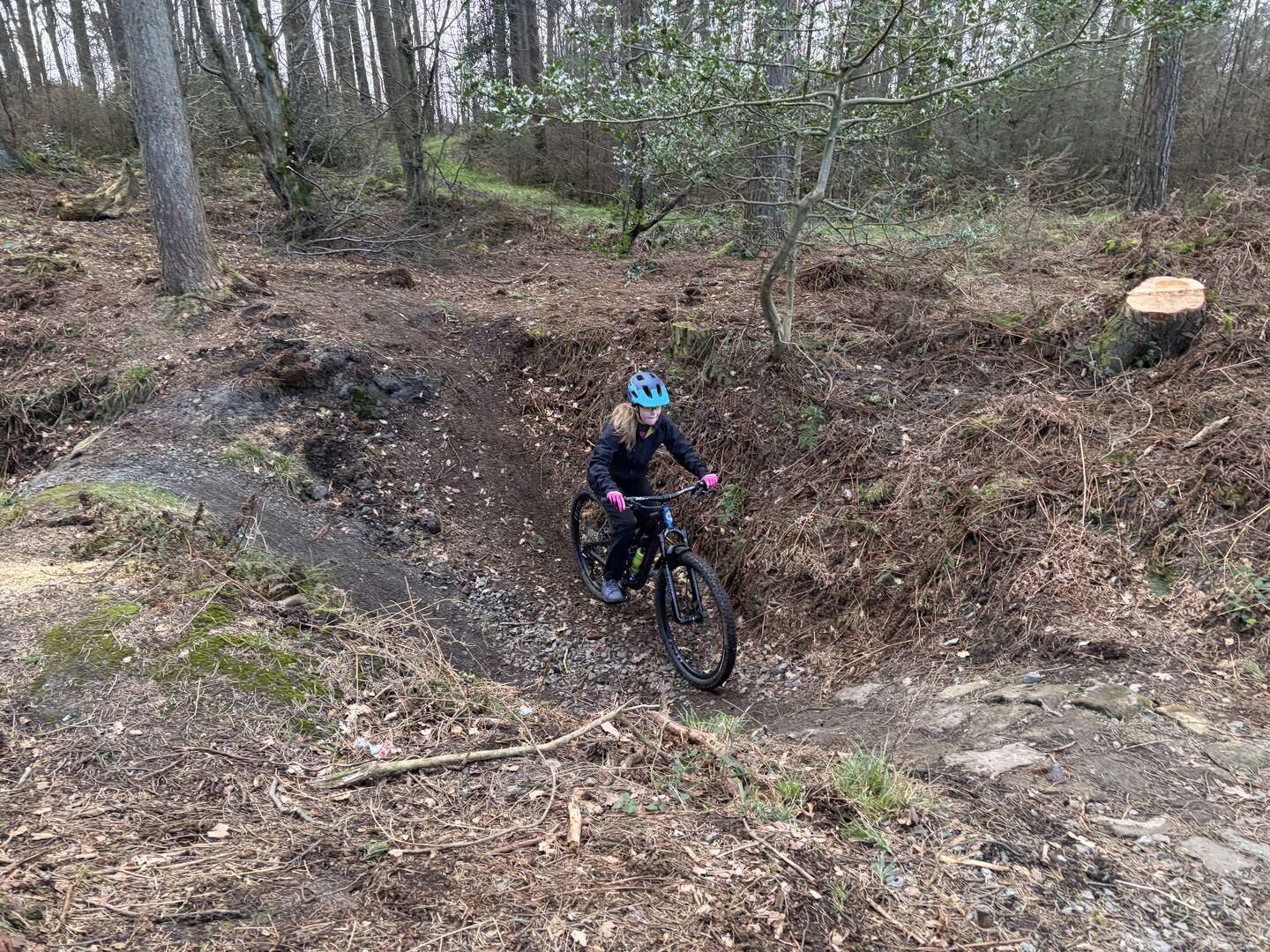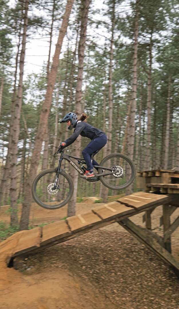 Took it for a local ride to local trail centre again, this time with just youngest a11y in tow. Worked on her confidence on her new bike on a set of bombholes, we're getting there 😎ย
