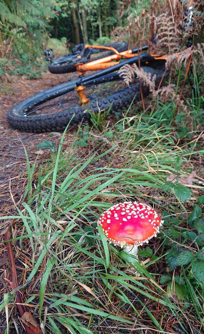25km of mostly XC in the FoD followed by a pint. We did go to ride the "mushroom trail" but sadly been logged so no mushy pics 🙁
