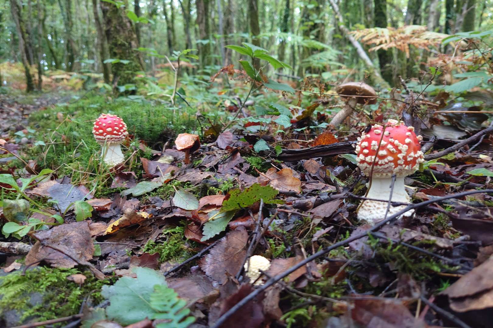 It was dry, but found many Fly agaric and others with their boletes. Im not sure what the other amanita is