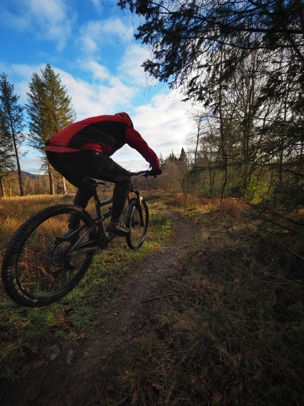 A snowy ride at Drumtochty. Everything was nice and grippy except the odd root hidden under the snow. Rebound needed tweaking as it was running a little slow in the cold.